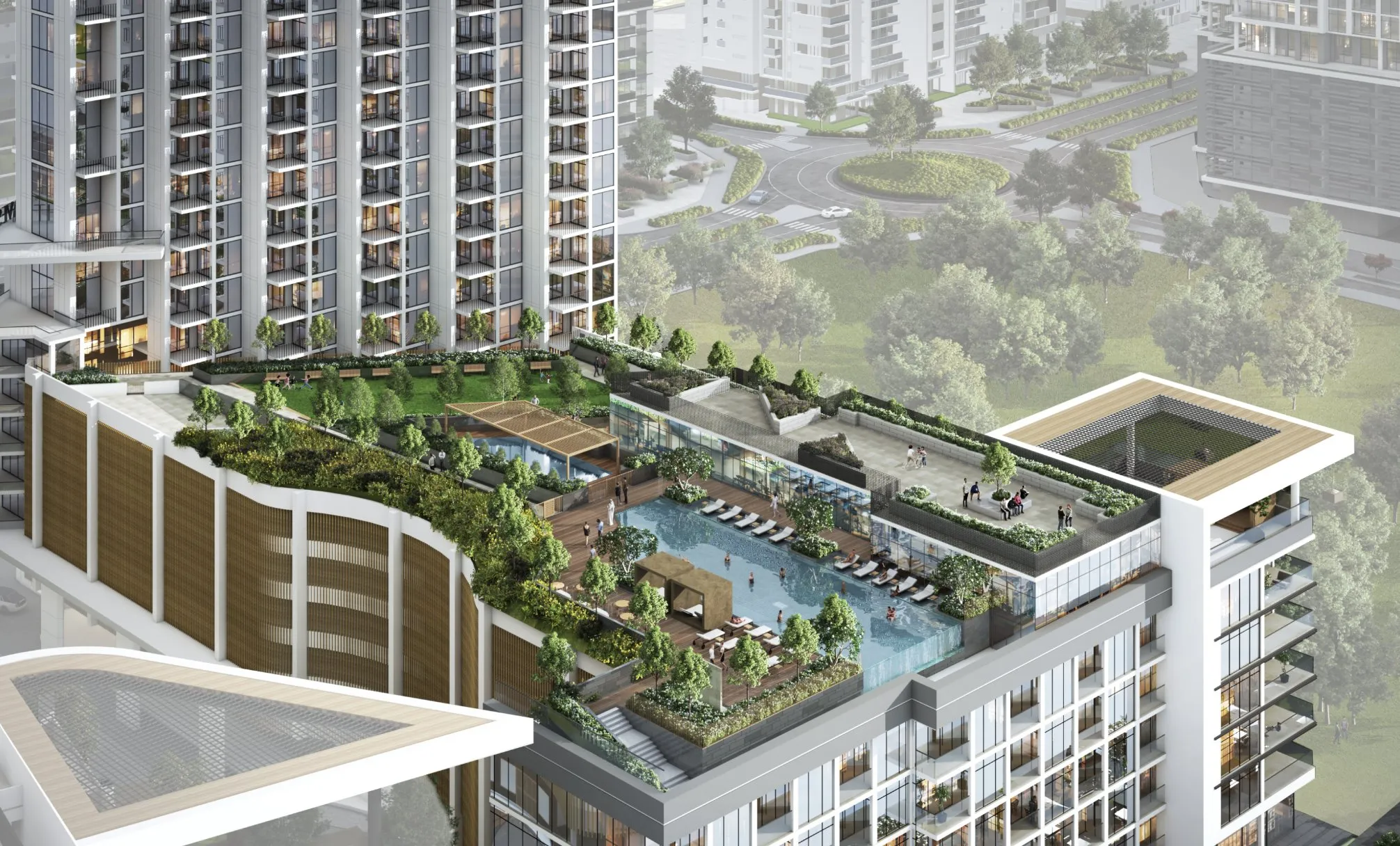 Residents can enjoy a rooftop infinity pool, fully equipped indoor and outdoor gyms, landscaped gardens, children’s play areas, jogging and walking trails, yoga and meditation spaces, BBQ and leisure zones, 24‑hour security, and ample parking. Retail outlets, restaurants and cafés are also conveniently located nearby.