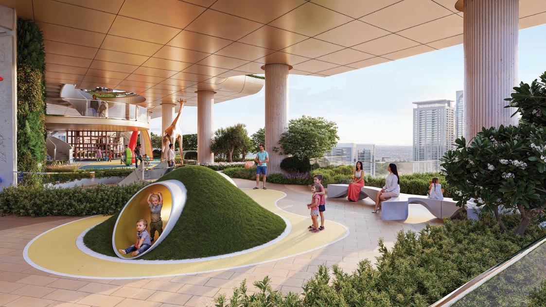 The development introduces four signature SkyParks positioned across multiple levels of the tower. These elevated lifestyle zones include landscaped gardens, infinity pools, wellness areas, fitness spaces, social lounges, and entertainment venues, creating a vertical community high above the city.